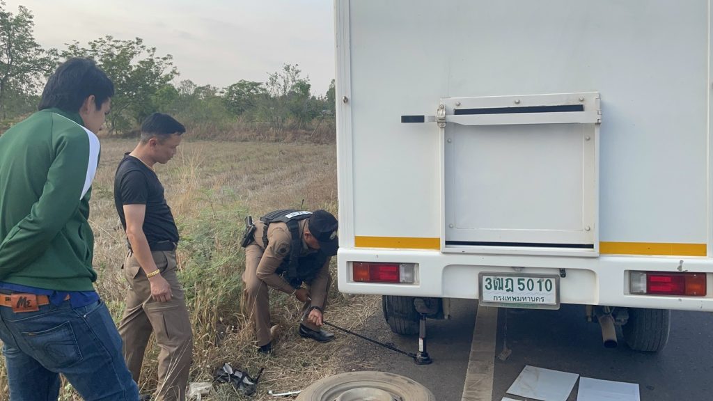 ว.4 ช่วยเหลือประชาชนยางแตกบริเวณ แยกบ้านคล้อเปลี่ยนยางรถใหม่ให้สามารถเดินทางต่อไปได้ เหตุการณ์ปกติ