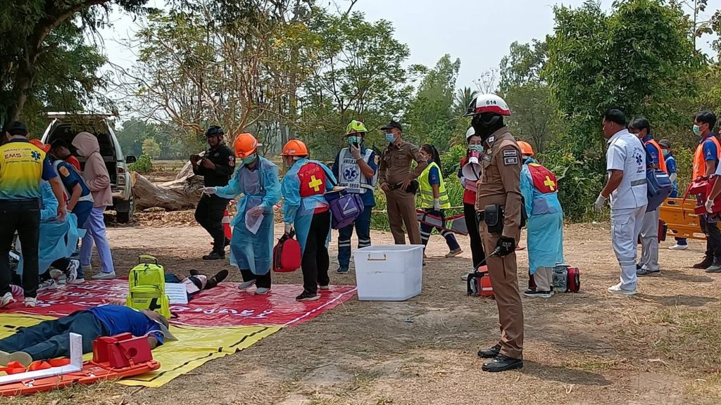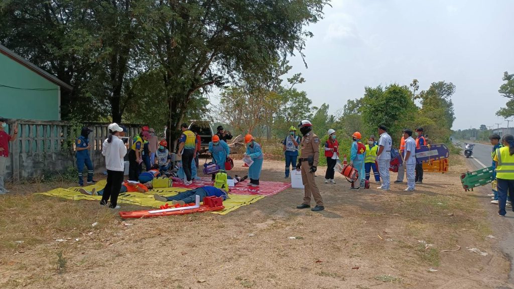 เมื่อวันที่ 25 มีนาคม 2568 เวลา 13.00 – 15.00 น. ร.ต.ท.บพิตร สืบสิมมา รอง สว.(ป.)ฯ ร้อยเวรจราจร พร้อมสายตรวจจราจร ร่วมกับโรงพยาบาลกันทรารมย์ ซักซ้อมแผนเผชิญเหตุกรณีมีอุบัติเหตุใหญ่ เพื่อเป็นการเตรียมความพร้อมรองรับเทศกาลสงกรานต์ ที่กำลังจะมาถึง