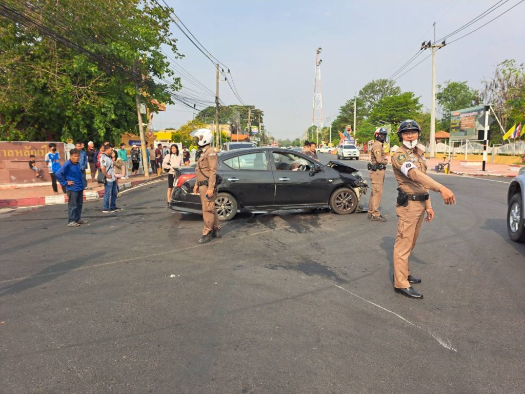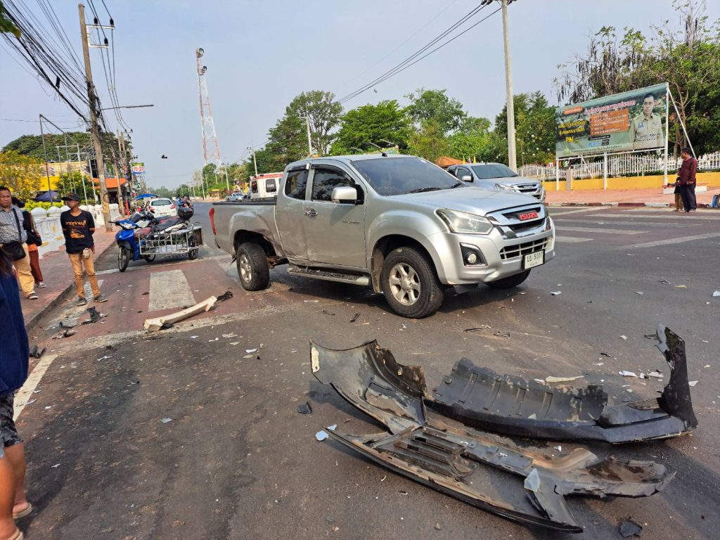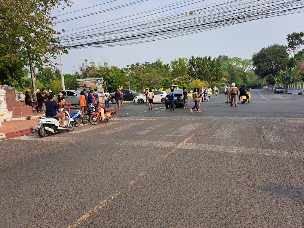 เมื่อวันที่ 18 มีนาคม 2568 เวลาประมาณ 12.50 น. พ.ต.ท.จันแดง ทวีโชค สว.(สอบสวน)ฯ พร้อมด้วยสายตรวจจราจร ออกตรวจที่เกิดเหตุรถยนต์กระบะชนกับรถยนต์เก๋ง บริเวณสี่แยกศาลหลักเมืองอำเภอกันทรารมย์ ไม่มีผู้ได้รับบาดเจ็บแต่อย่างใด